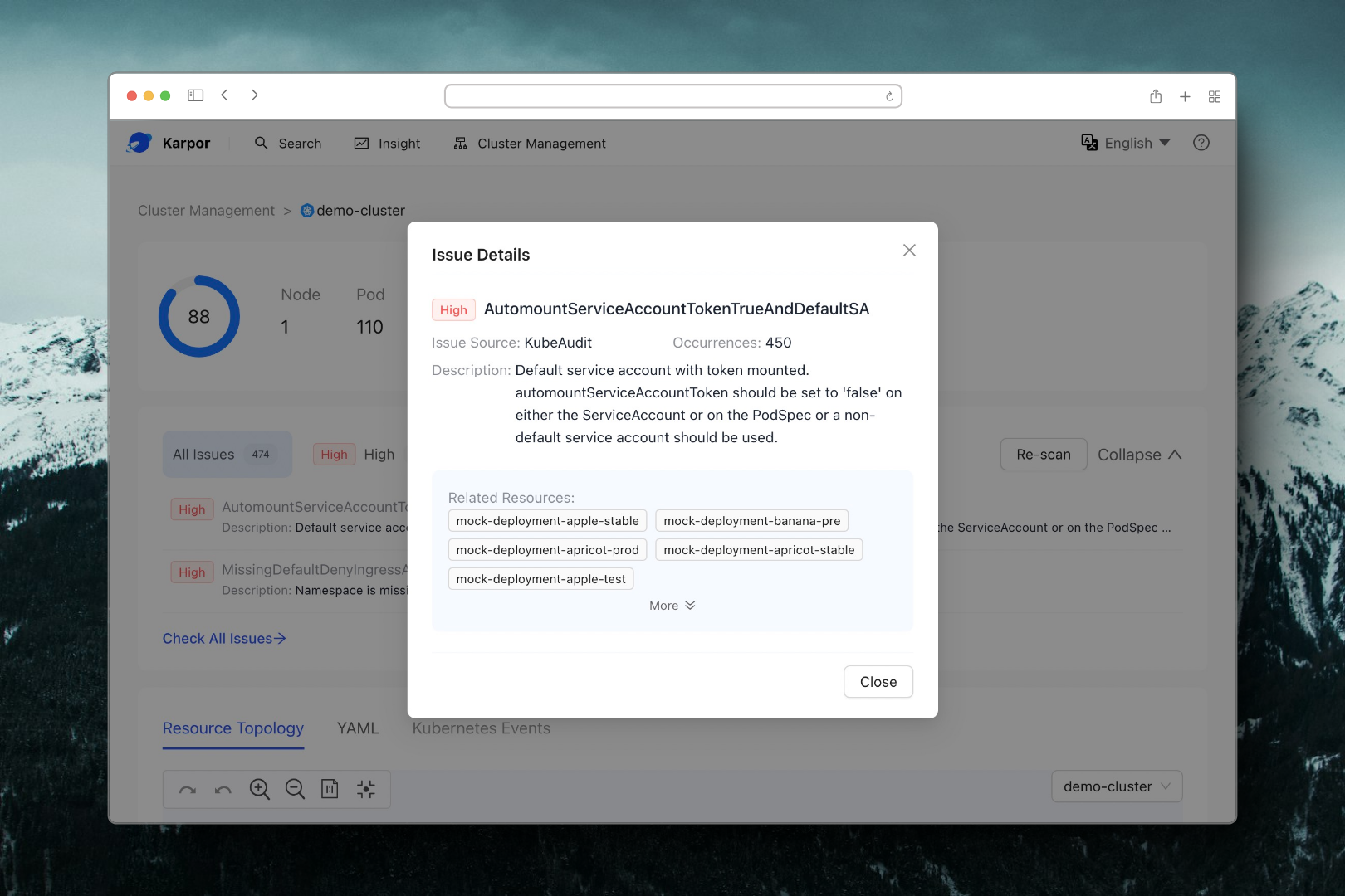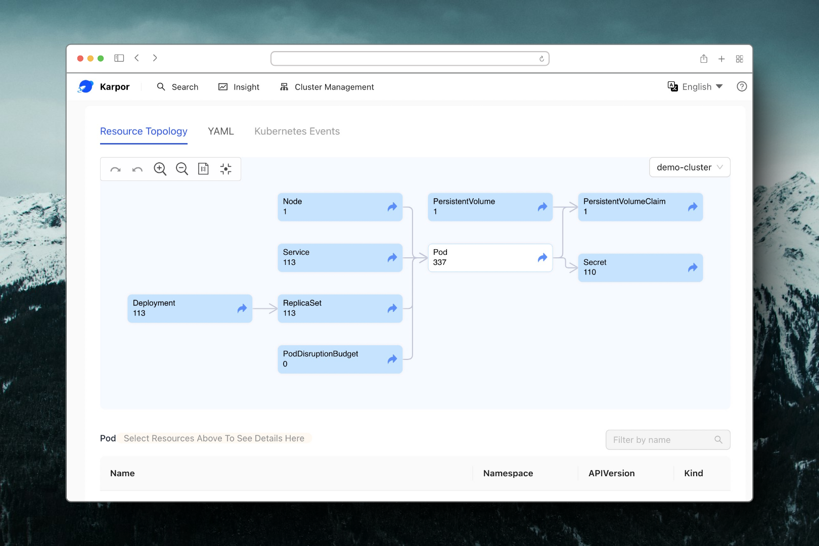 Please note that this guide only provides a quick start for Karpor, and you may need to refer to additional documentations and resources to configure and use other features.