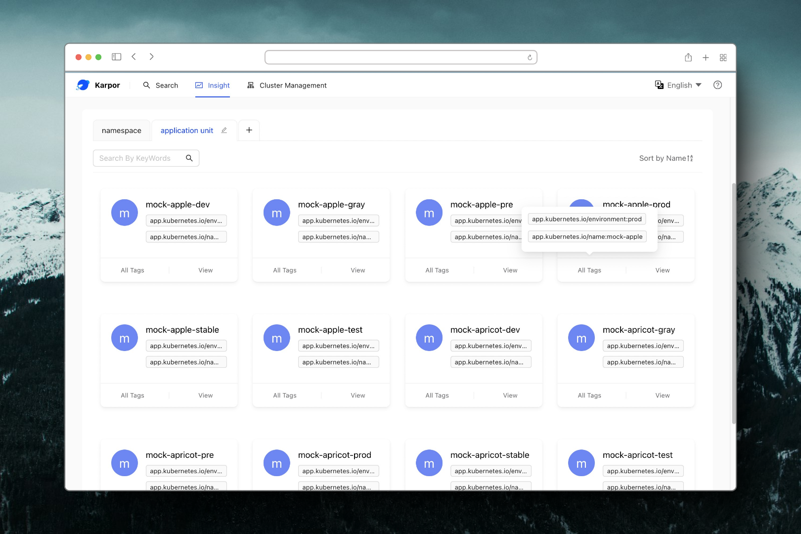 We mark the name and environment of the application in the label. For example, the following is the application unit of mock-apple in the production environment: